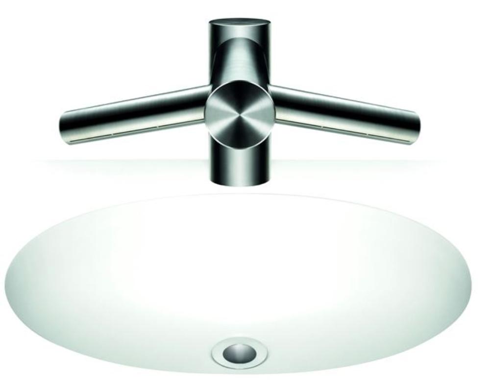 СушилкаDysonAirblade™Tap совместима с большинством раковин. При наличии в раковине отверстия для сливной пробки, от использования последней стоит воздержаться, поскольку из-за высокой скорости подачи воздуха и близости поверхности воды есть шанс разбрызгивания капель за пределы раковины.