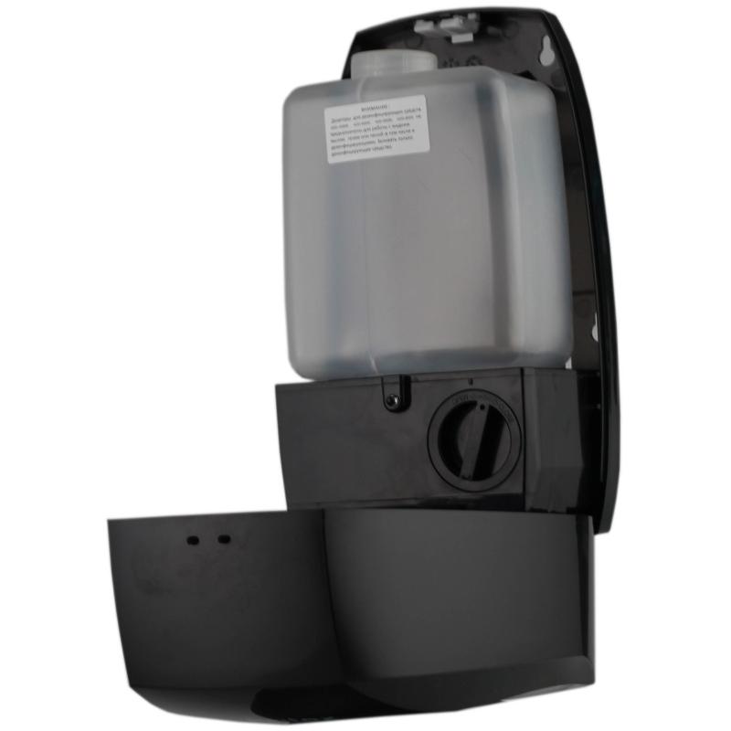 - Дозатор выключается автоматически при открытии крышки, кнопка блокировки закрыта силиконовой накладкой, что исключает попадание жидкостей внутрь механизма при чистке или случайном протекании мыла (пены, дезинфицирующих средств).